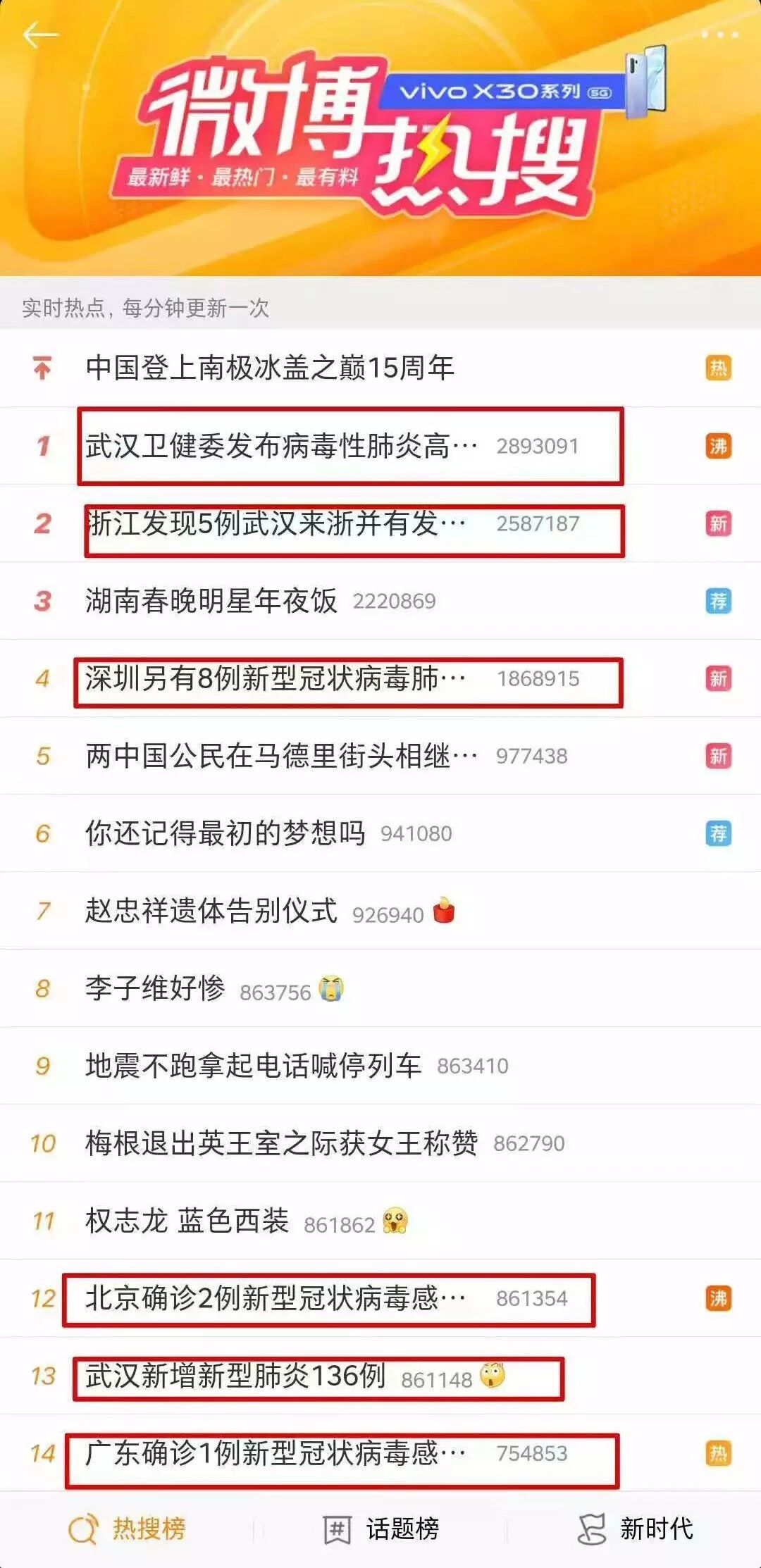 近期新型肺炎的事情让各位家长无不担忧,今天的微博热榜也被新型肺炎刷屏: